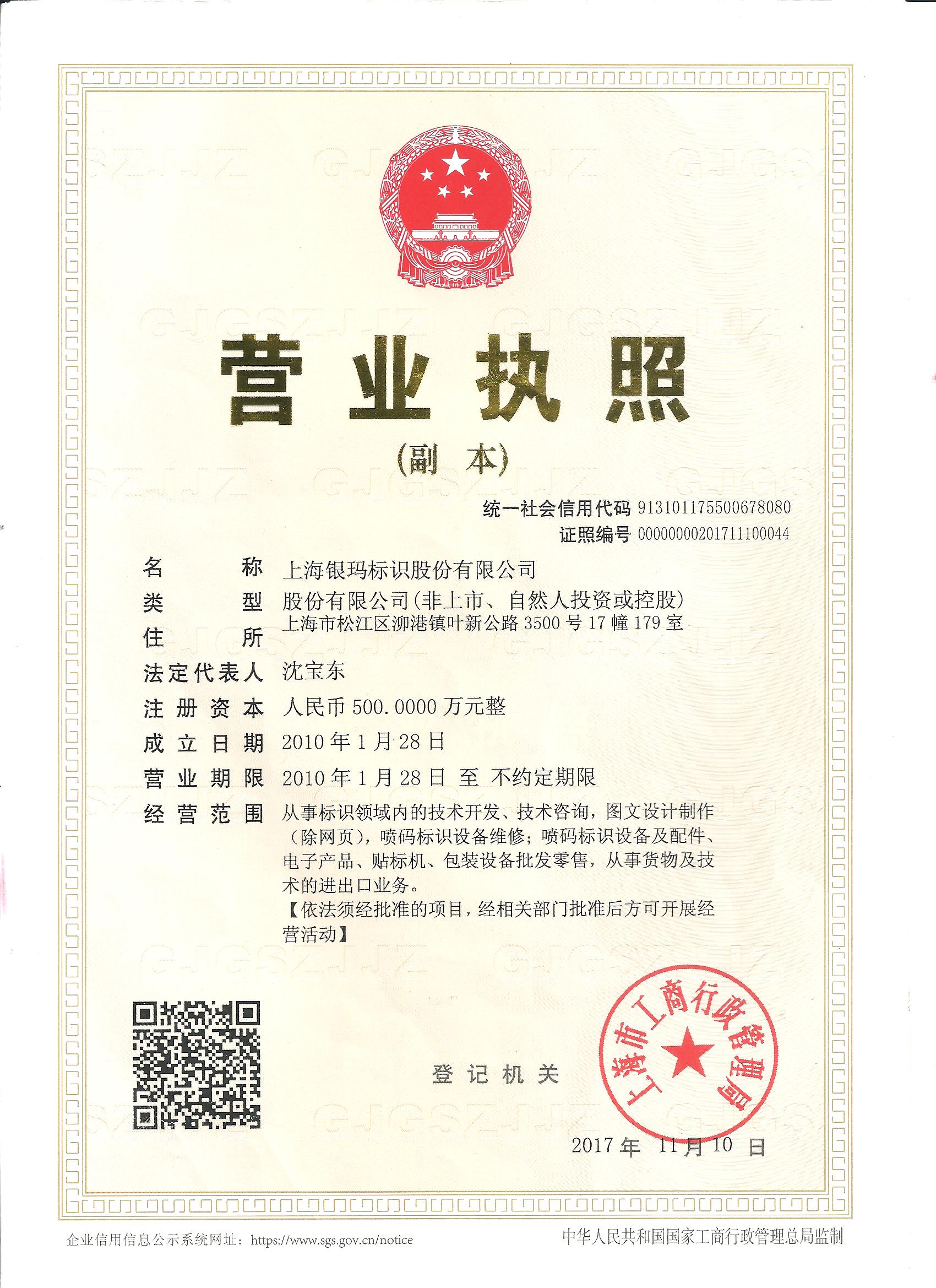 上海銀瑪標識股份有限公司(原名:上海銀瑪標識技術(shù)有限公司)成立于2010年元月。是專業(yè)從事噴碼標識設(shè)備、激光智能標識系統(tǒng)及材料表面賦碼技術(shù)等研發(fā)設(shè)計、推廣應(yīng)用的企業(yè)。可為用戶提供“一物一碼”技術(shù)支持與服務(wù)。公司2015年通過ISO9001質(zhì)量管理體系認證,為上海市科技創(chuàng)新型中小企業(yè),并獲市科技創(chuàng)新基金支持。